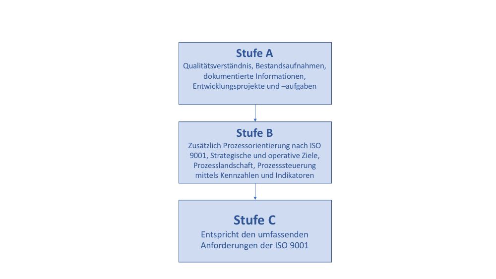 In der Stufe C wird ein QM-System nach ISO 9001 etabliert.